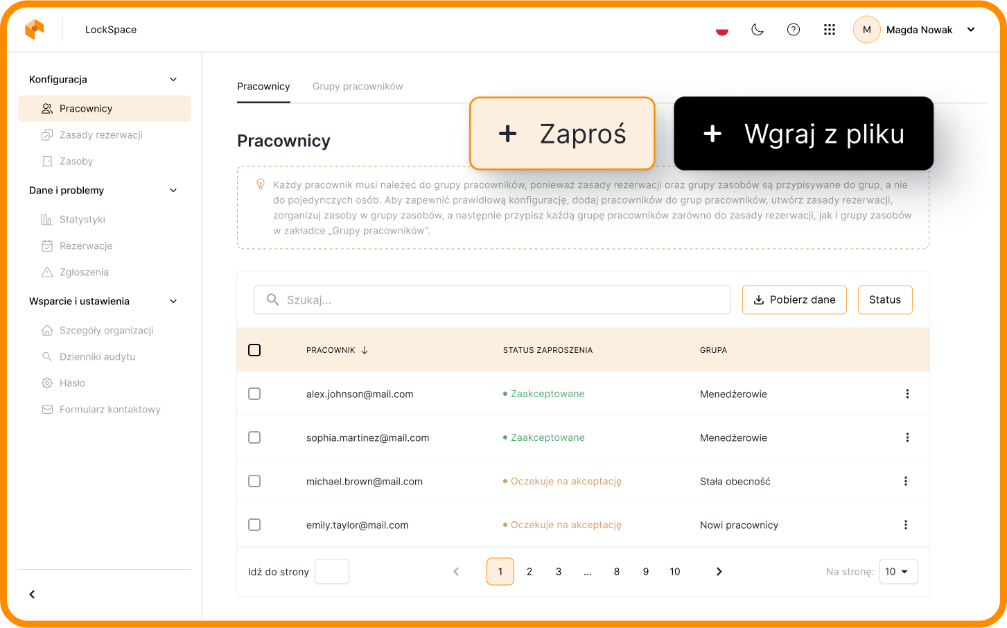 Na końcu zapraszasz pracowników — system wysyła im e-maile z